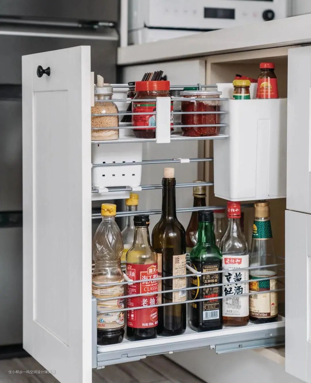 厨房收纳最实用的当然还有抽屉,比对开门更节省空间。
