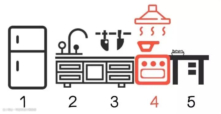 在厨房里,所有的活动路线都是有套路的,我们只要遵循储-洗-切-煮-盛的操作顺序,再合理安排好功能分区,便能让厨房更便捷,避免下厨时手忙脚乱。
