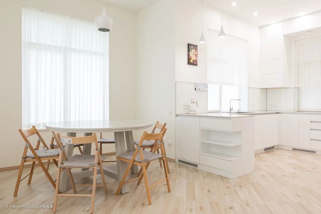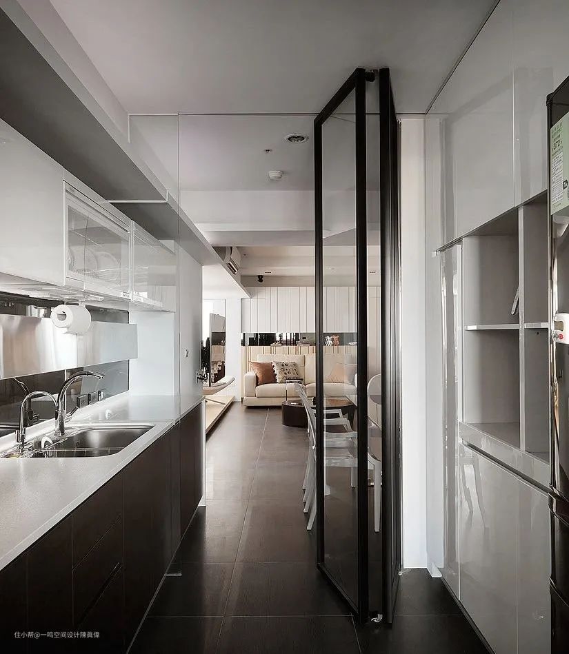 这样就能够实现,既有开放式的通透感、整体感和交互感,又有封闭式厨房分区、阻隔油烟的作用。