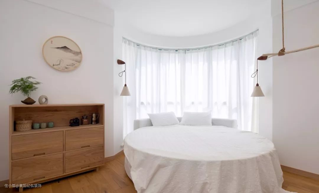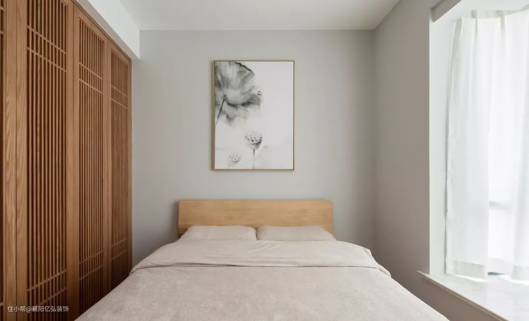 次卧没有多余的家具,床头背景墙上的水墨画非常有韵味。