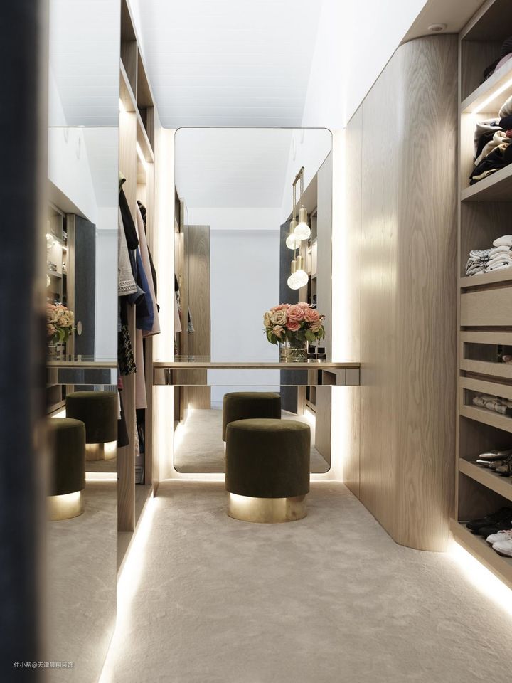 以上便是关于步入式衣帽间的设计方案,总结来说,面积要够、设计要细、涵盖要全,才能真正发挥它的功能性。