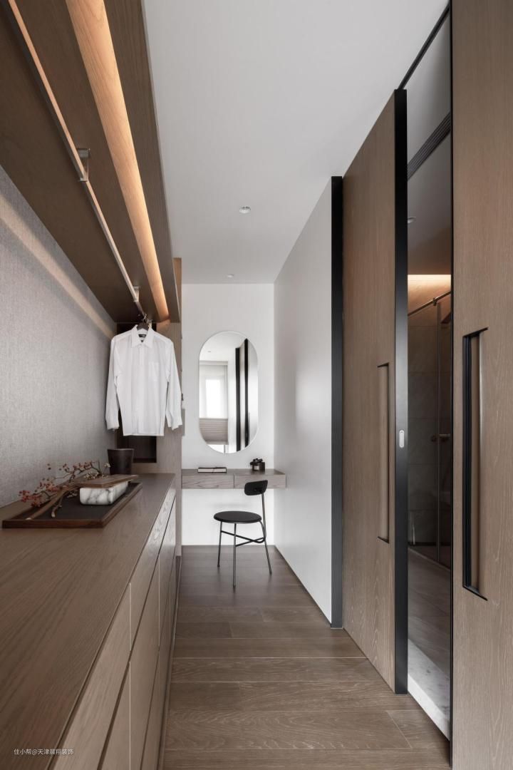 (1)面积足够的卧室空间内规划出一个独立的区域设计成步入式衣帽间,这样的位置选择,具有相对连贯的行走动线,在日常使用中即私密又方便;