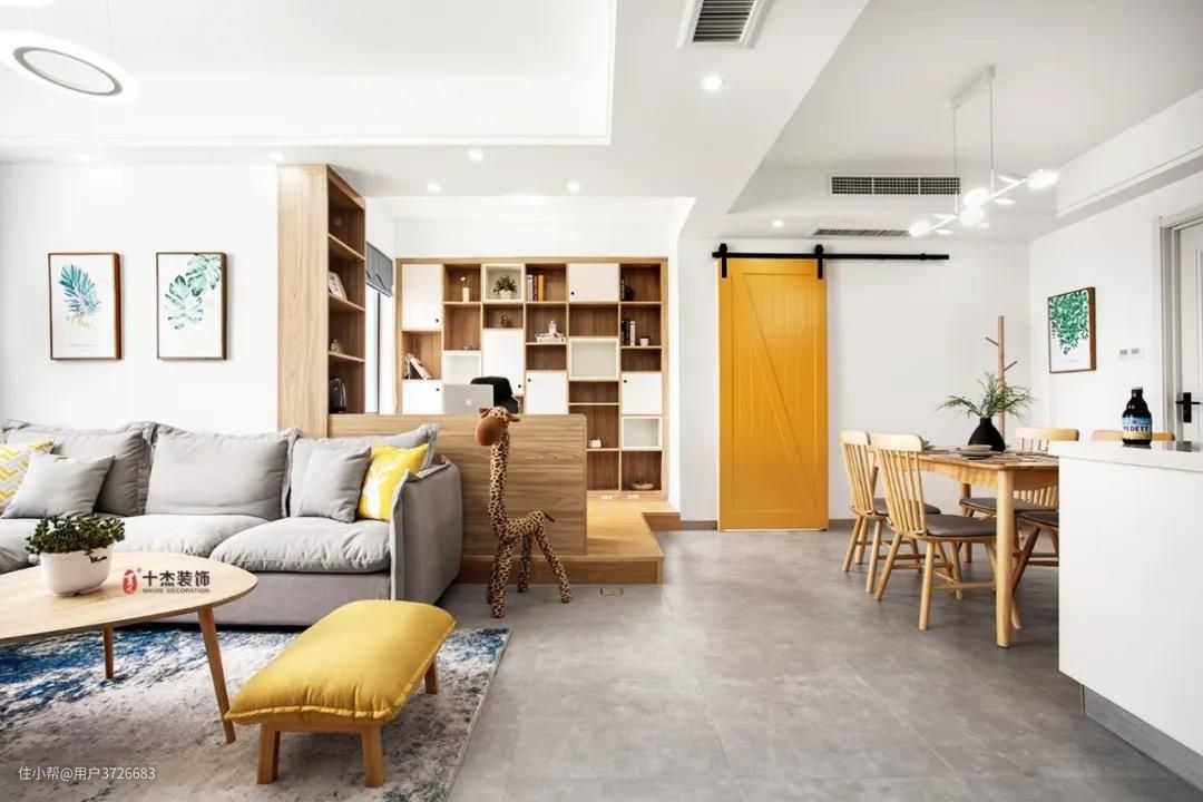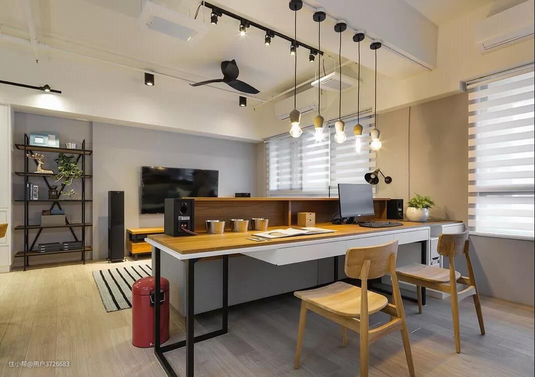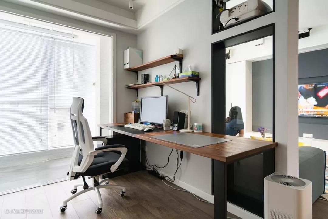 利用沙发做为隔断,以沙发背后设计一个开放式的书房区域是比较常见的。沙发背后放置书桌,让空间的分区更明显,而且沙发也有了靠背,更能让人感觉安稳踏实。
