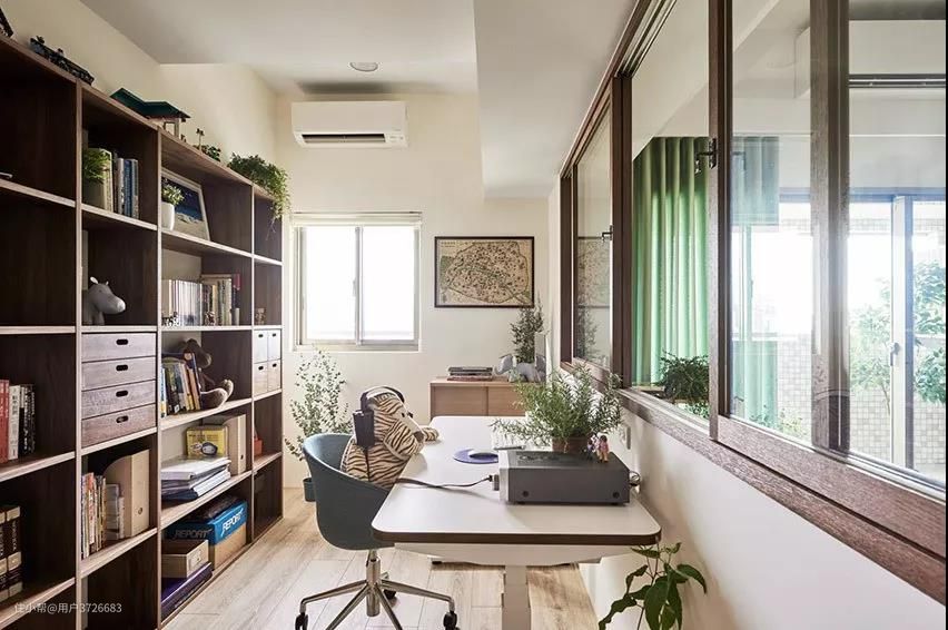 阳台的采光好,还可以书房放在客厅外的阳台。