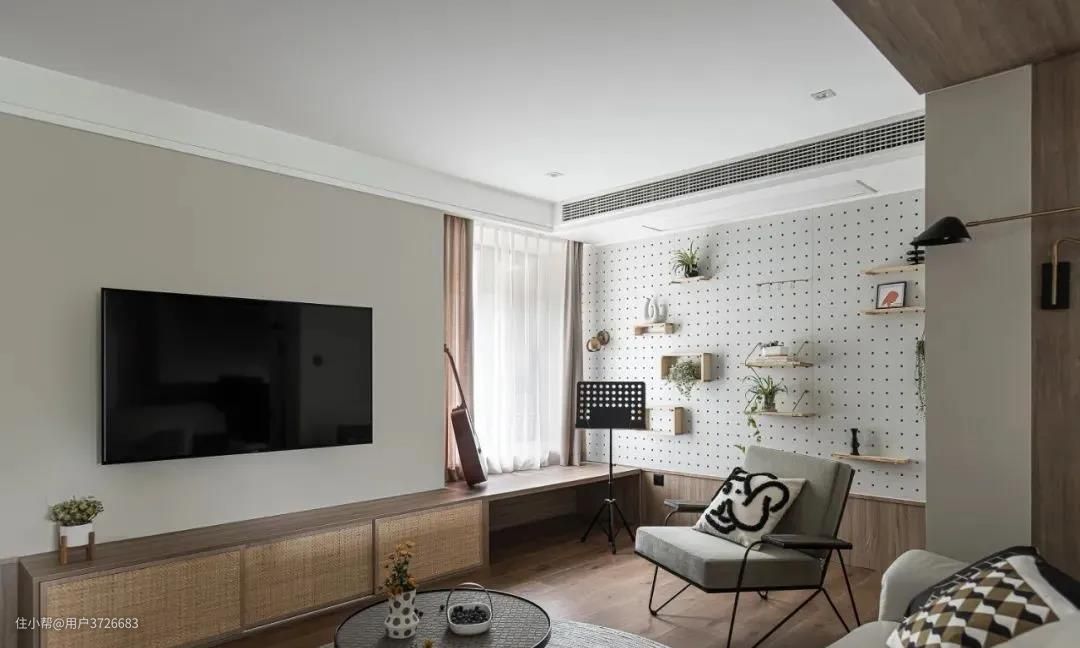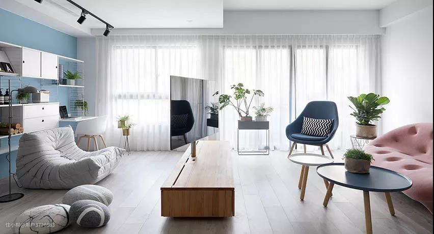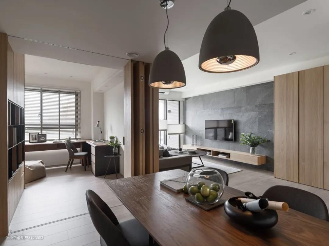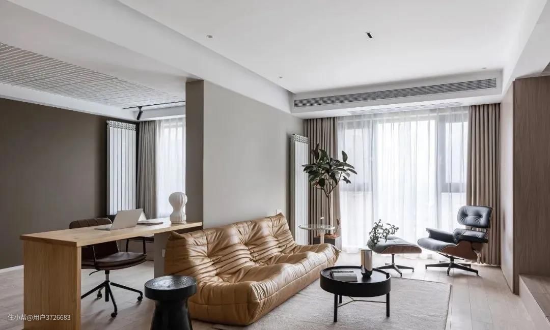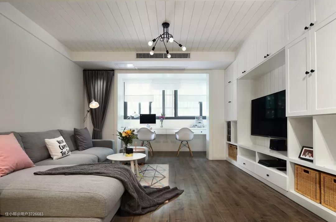 这个案例以电视为隔断分开客厅与书房,整个空间的视野就显得更加开阔通透