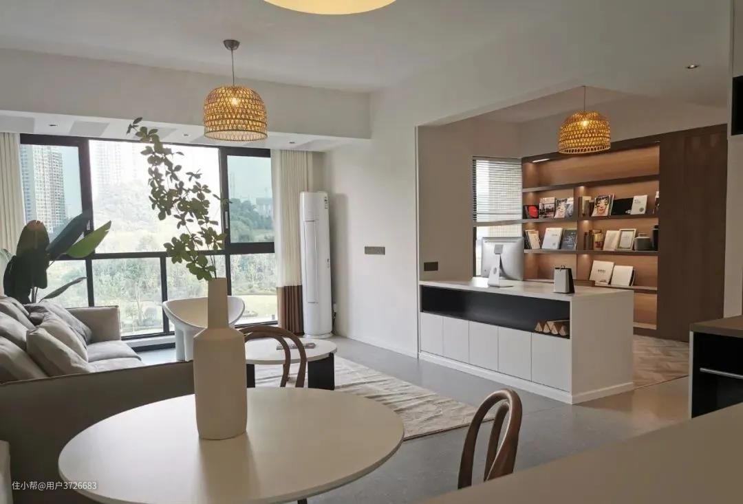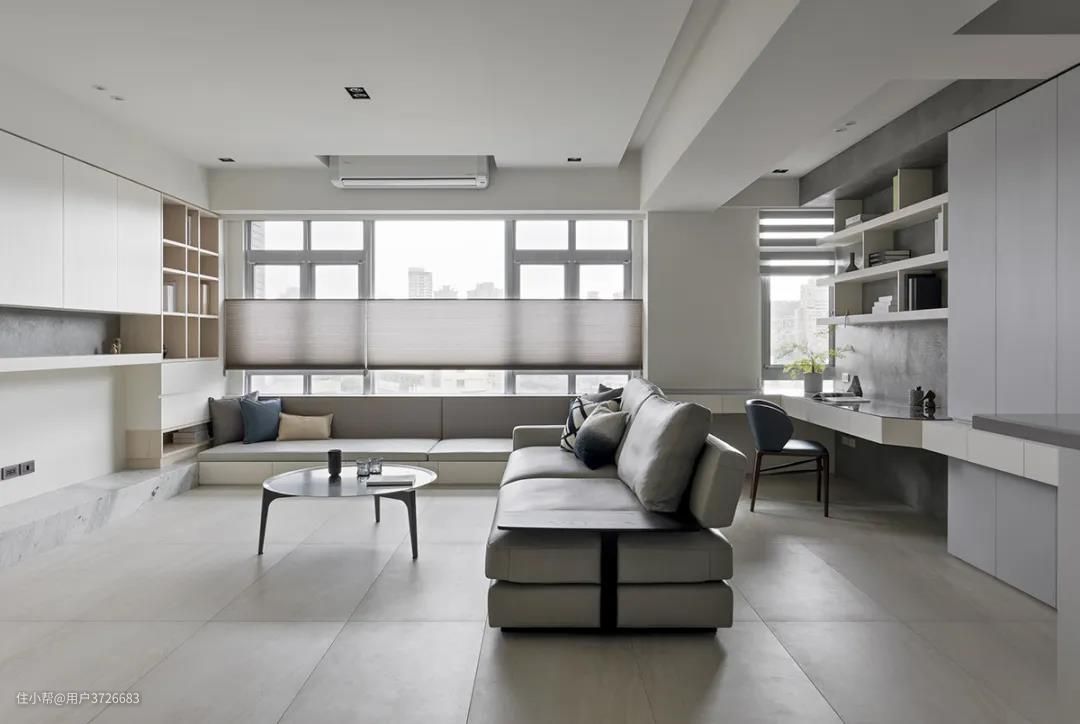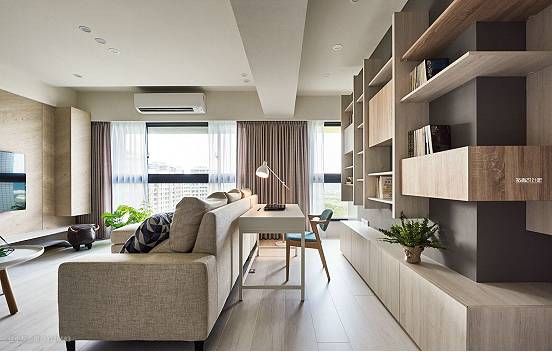 客厅结合书房的设计,让家充满书香气