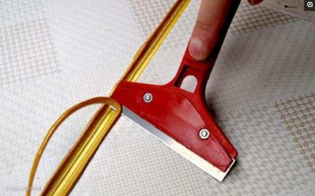 压完缝以后,等美缝剂固化以后,多余的美缝剂边角料会粘黏在瓷砖上,这时候需要用铲刀把这些边角料铲掉。