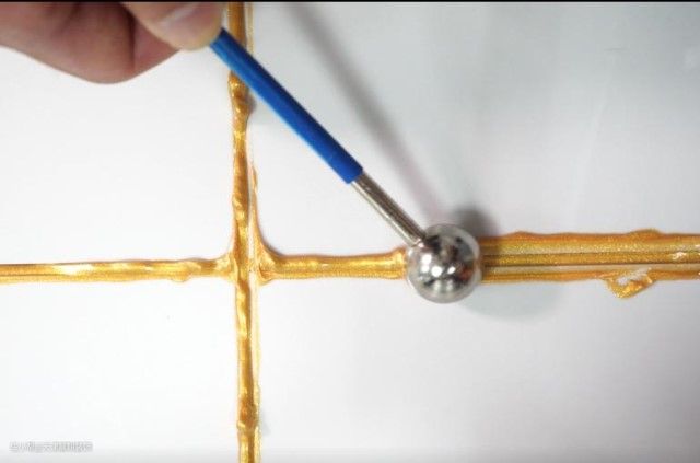 打完美缝剂以后,一般在20分钟-30分钟内完成压缝即可,这里比较推荐钢珠球压缝工具,压完后会显得更美观,而且压缝也可以解决部分美缝剂没有打满缝隙的问题。