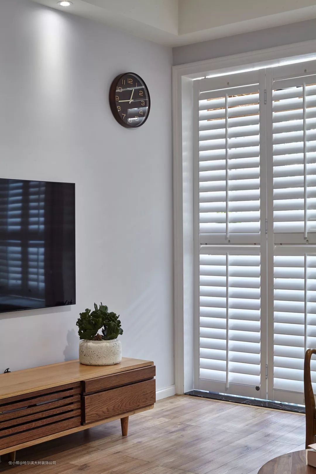 百叶窗若隐若现地透着一丝丝的光线,让客厅的层次感更加丰富而又清新舒适。