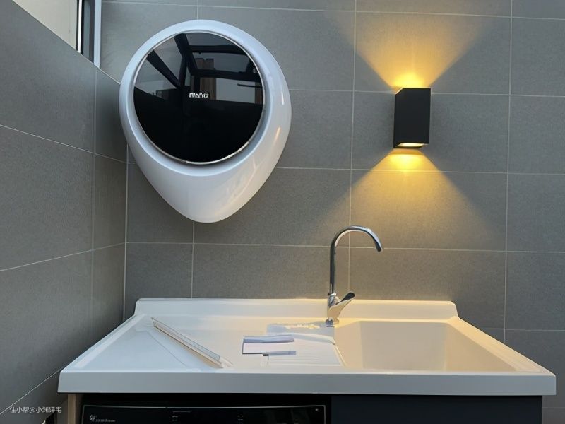 如果家里放不下一台小洗衣机,可以选择壁挂式洗衣机。像马桶上方,电热水器下方这种角落,都可以供它容身。