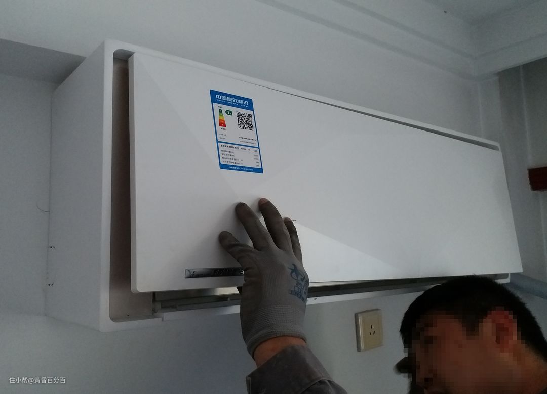 ▲安装完毕后,来张全家福。与普通空调一层不变的,工工整整的一块白色面板略微不同,云米Space-E空调采用了钻石型的面板,看上去更有艺术感,挂在墙壁上也不再像普通空调那么的突兀。