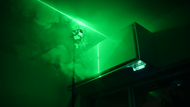 ▲再看一看专业人士亲自做的实验,果然风是从空调的上下左右四个方面同时出来,并且没有向下直吹的气流。