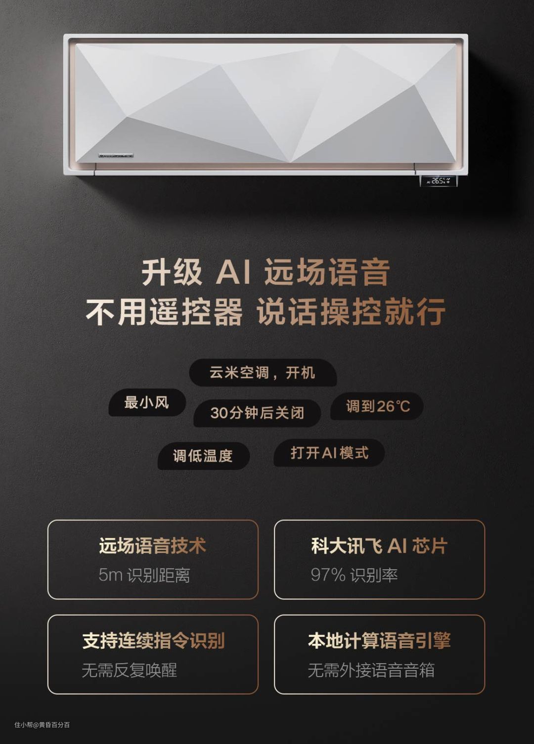 ▲另外,云米作为互联网家电品牌,智能化是必须要有的,云米给这款空调配备了科大讯飞的AI芯片,可以在5m范围内进行语音操控,识别率高达97%。同时,云米Space-E 空调也接入了小米智能家居生态圈,可以与其它米家智能家居进行联动,从而使家居更加智能化,生活更加轻松。