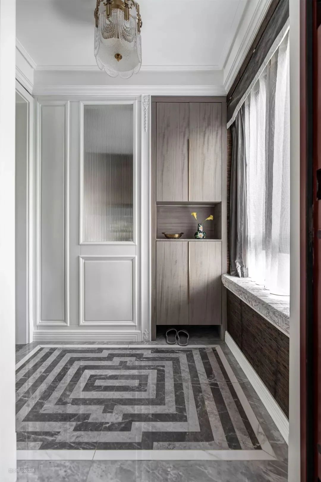 入户第一眼就锁定了入户门厅立体回纹图形地面,几何精致之间是满满的高级感。