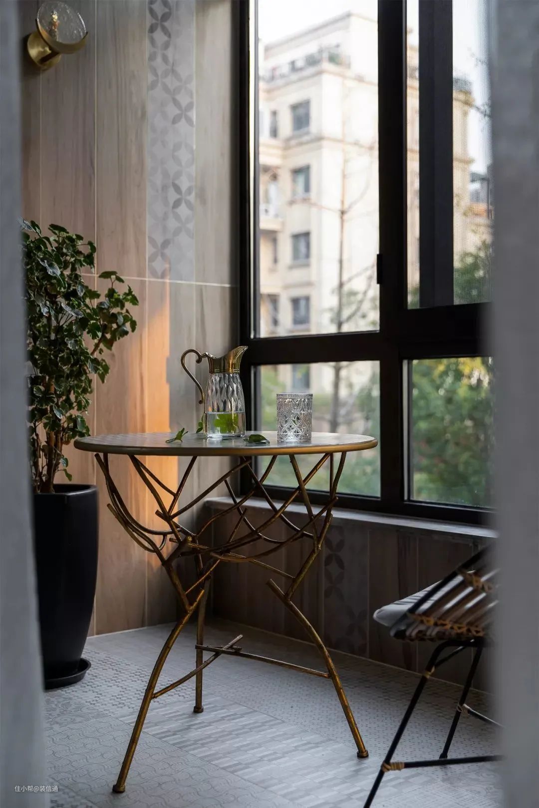 客厅纱帘外便是南边生活阳台,阅读,休憩,品茶,晾晒,都可在这个如仙境般的阳台实现。