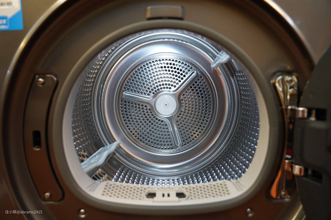 ▲10kg热泵干衣机内筒直径要比同样10kg洗烘一体机大了一圈。所以衣物舒展空间就越大。能一次烘的衣物也就越多。这是洗烘一体机无法比拟的。