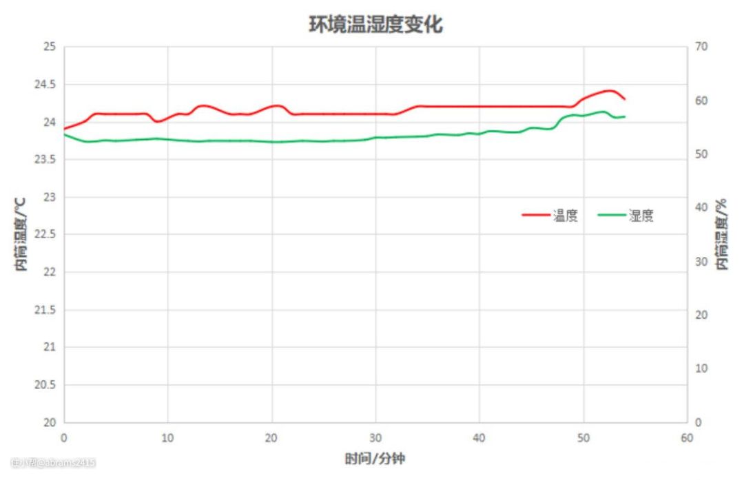 ▲温湿度传感器在热泵烘干机工作期间未探测到温湿度剧烈变化,所以能证实:热泵烘干机不会对周边环境温湿度造成影响。