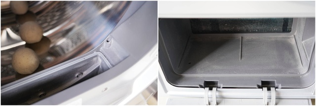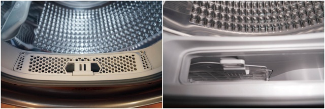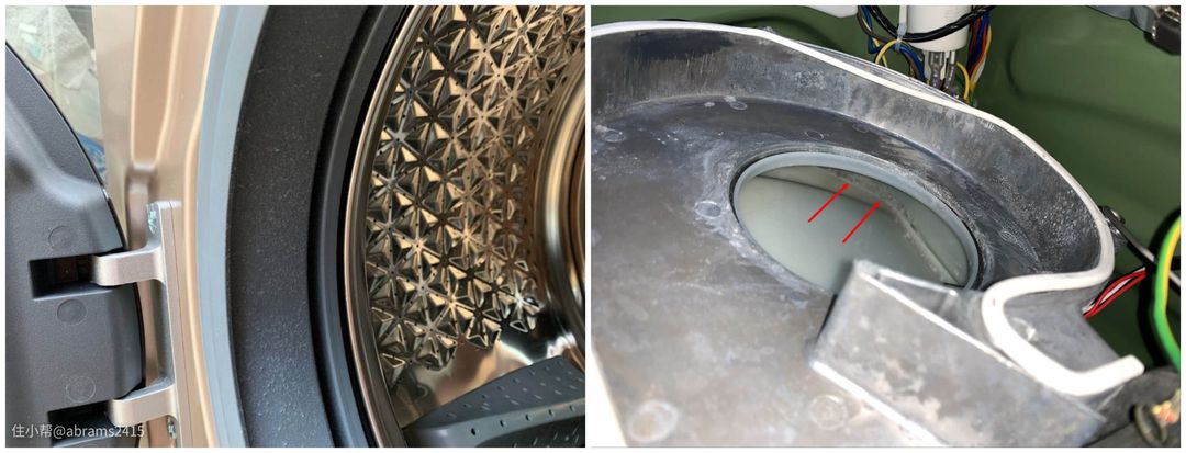 ▲洗烘一体机普遍没有绒毛过滤器,因此烘完衣物在滚筒内壁会沾上大量绒毛。而且风道内也会沾有绒毛。