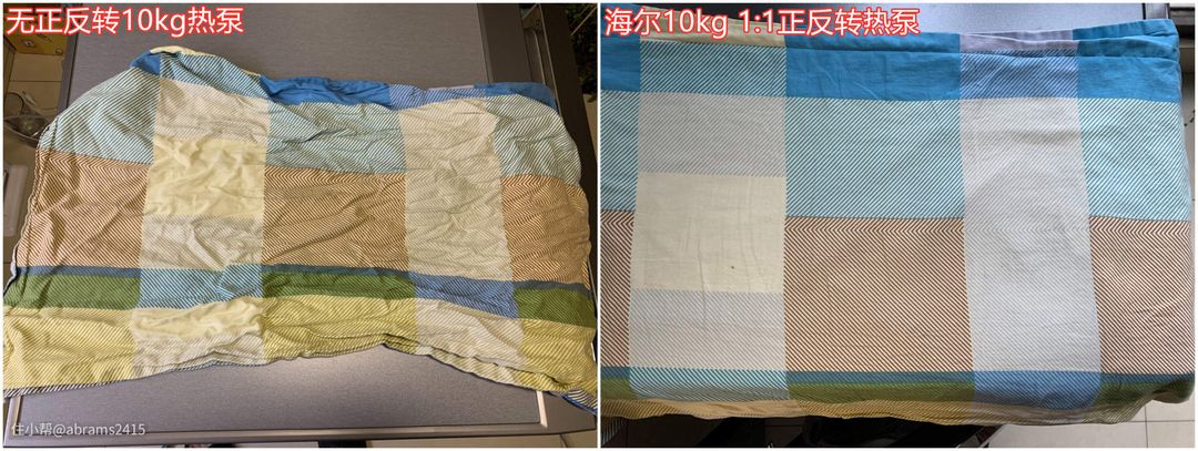 3、烘干相同量床单被褥,某10kg热泵用时1小时40分。海尔10kg热泵用时1小时10分。显然海尔热泵效率更高!