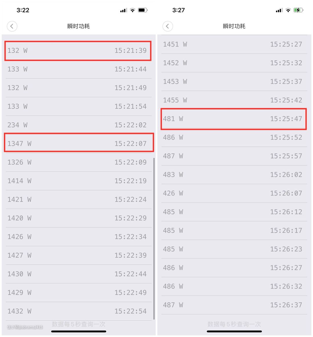 ▲看下功率计记录的功率(功率计记录有效时间对应上方运行时间,数据一一对应哦,无造假可能)