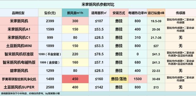 1.300-450m³/h档位,如果使用时间长,则土豆Super的后期使用成本性价比更高。虽然初次购机成本土豆super高于米家新风机,也高于罗美蒂琪新风净化机,但是后期长期使用的耗材成本更低。而对于新风使用时长不多的家庭,则可以考虑罗美蒂琪新风净化机,悬挂落地两用的方式即使不当新风机也可以当做一台空气净化器来使用。