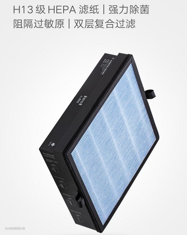 在耗材上,这款新风机采用一款H13级别的滤芯,售价为99元。