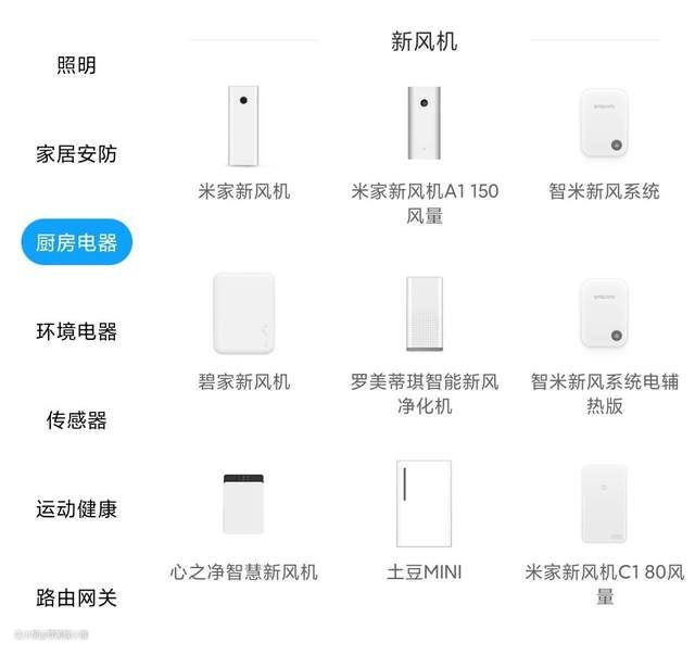 其中部分品牌已下架,这里不再介绍。另外土豆SUPER新风机在米家中被归类为空气净化器,这里进行纠正。