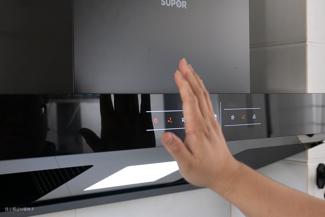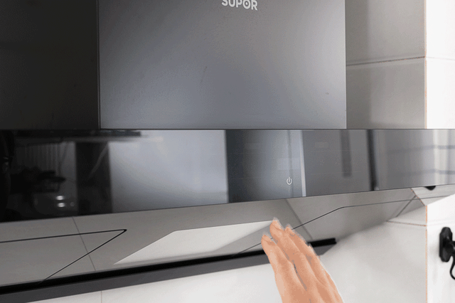 ▼这款油烟机支持隔空手势操作,这样炒菜时,手上的油污就不会沾染在油烟机上,有利于保持烟机的整洁。