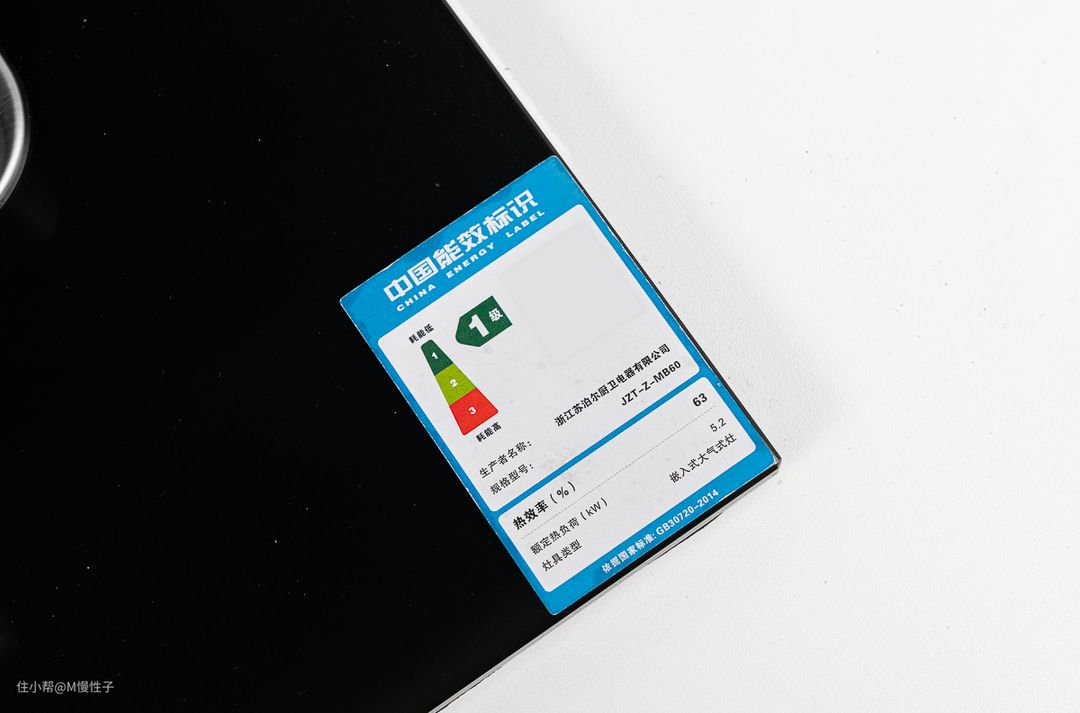 ▼灶具上也有相应的能效标识,这款灶具同样打造了一级能耗的标准,特别是在额定热负荷方面,达到了5.2KW,相对来说是目前家用灶具最高的火力值了,而大火可以让我们缩短炒菜的时间,保证营养不流失,同时炒出来的菜也更香