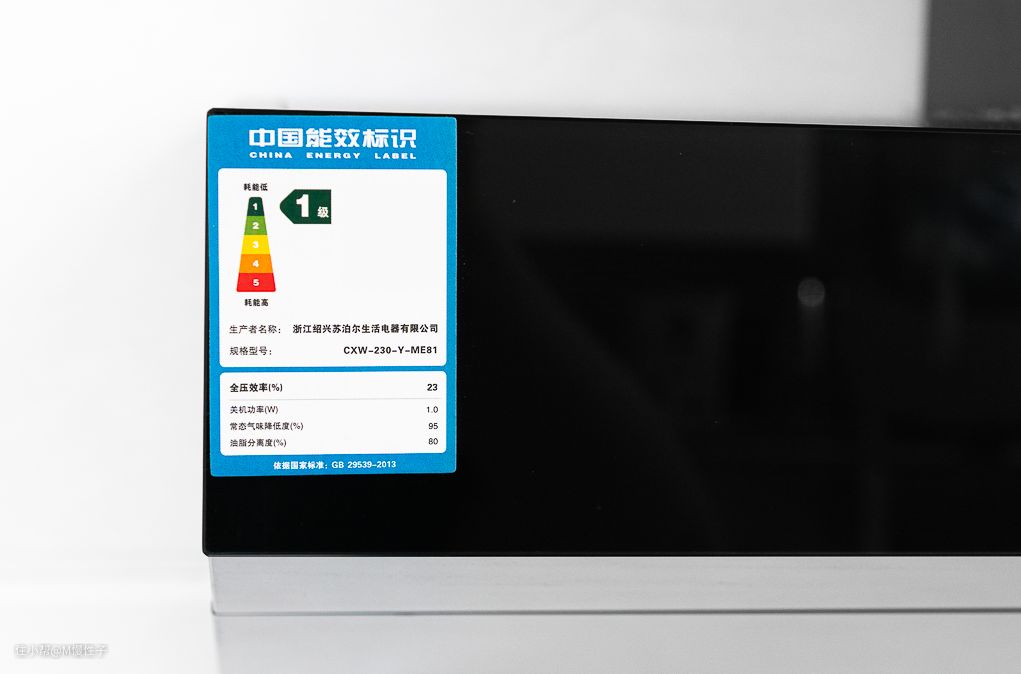 ▼机身上也有相应的能效标识,这款产品达到了一级能效的标准,在油烟分离度和气味降低度上都有较好的表现。