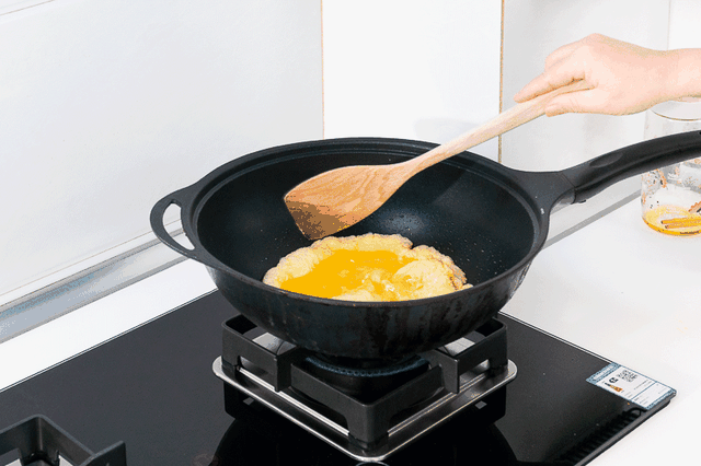 ▼可以看到,由于火力够大,炒出来的蛋能像在外面买的炒蛋一样,有膨起来的效果,不像一般灶具小火炒得那么僵僵的