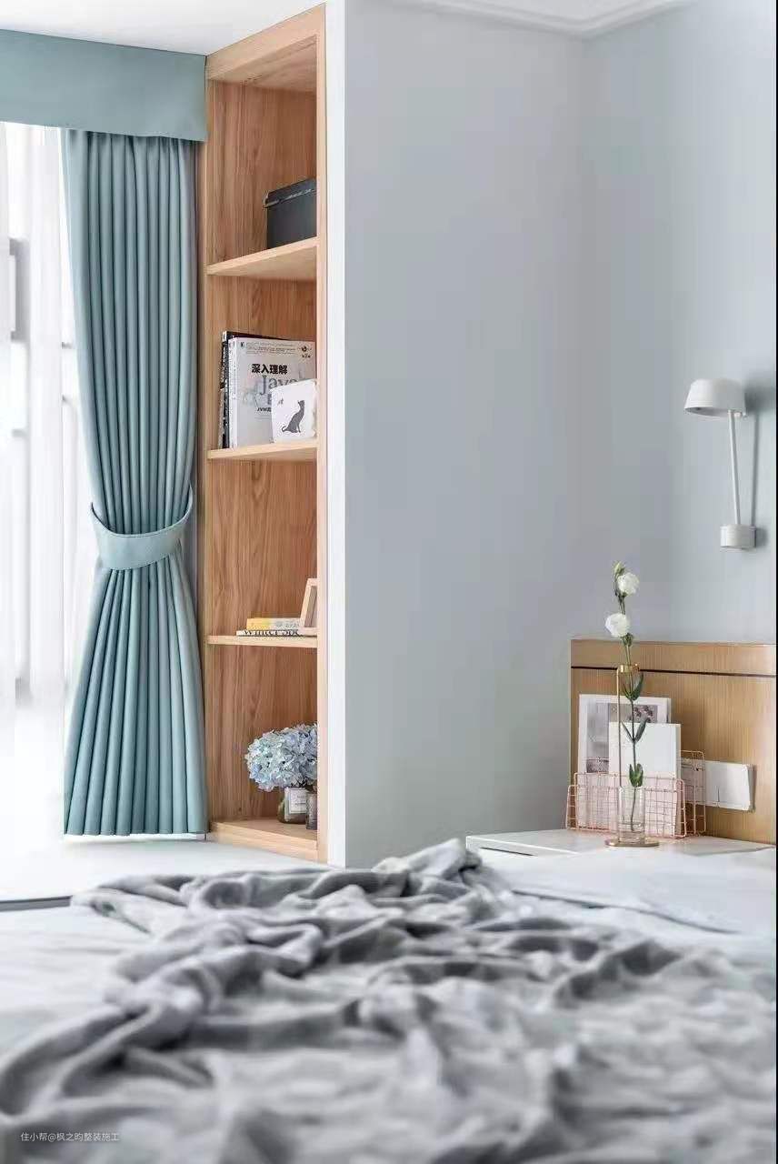 飘窗垫上舒适的垫子,一侧做开放式收纳架,平时在此小憩、看书等都是不错的选择。