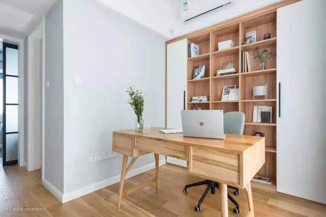 书房比较小,于是将书房后面的墙壁掏空,定制整墙式收纳柜。