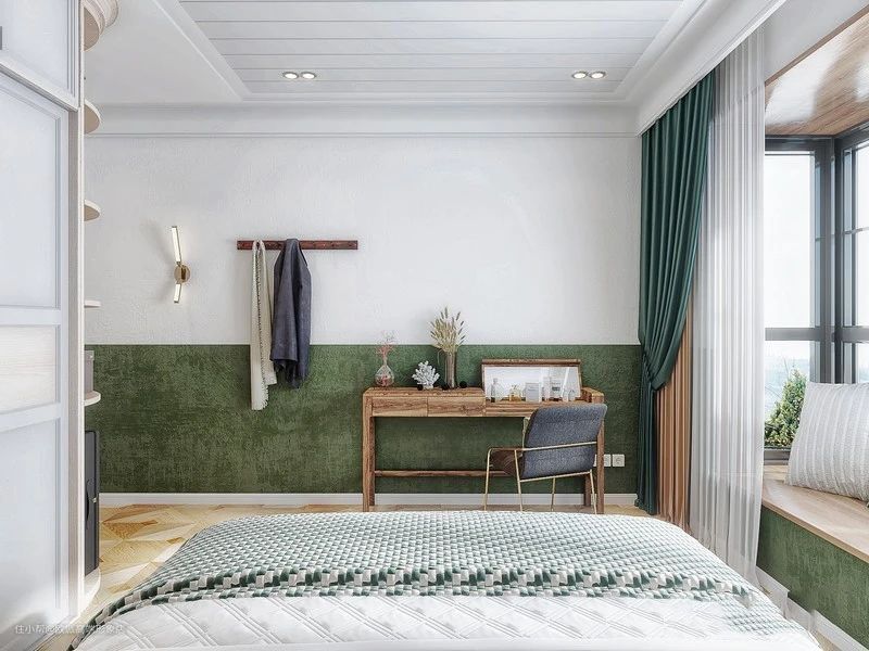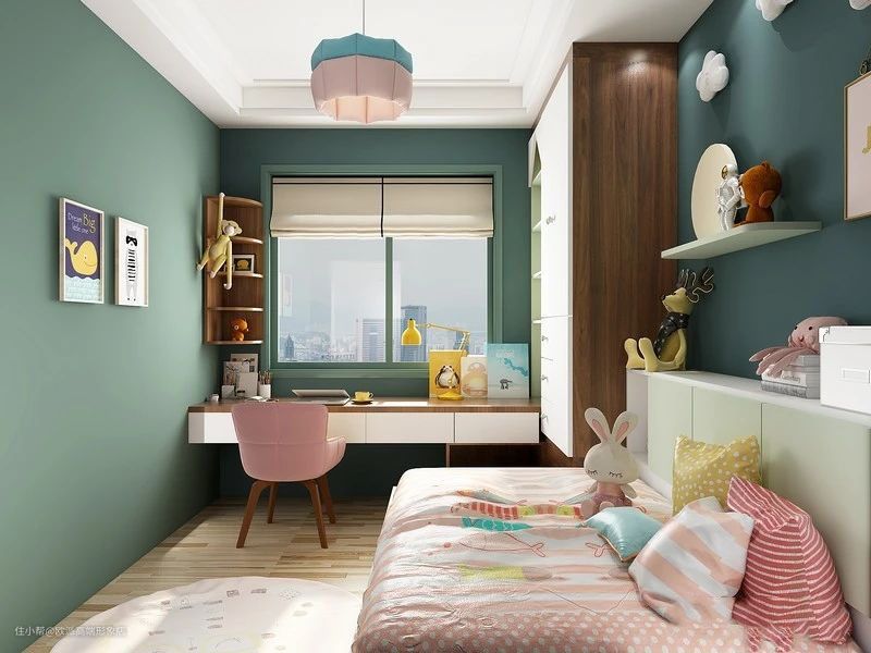 卧室使用了高级感满满的莫兰迪粉与绿,营造温馨的空间氛围,还有到顶的双开门大衣柜,让衣物和饰品均一览无遗;还配置了贴合墙角的飘窗柜,让空间颜值与实用兼备。你家有几个卧室呢?每个家、每间房的大小各有不同,相同的是都住着我们喜爱的家人。