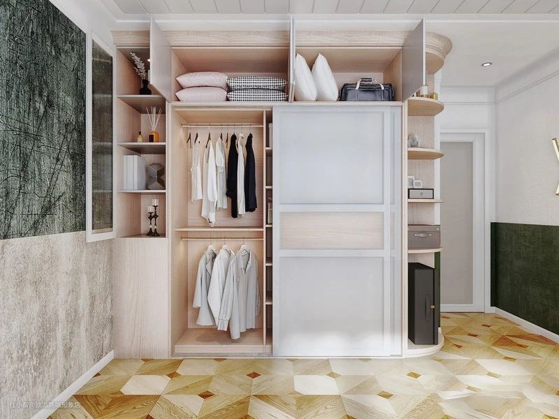 老人家的房间家具最好贴墙摆放,并做圆角处理,下方案例的衣柜在开房去就特意做了圆角,方便老人收纳日常物品之余也避免磕碰,另外椅子用的也是圆角样式的,让手感更顺滑,同时兼顾老人家的安全。