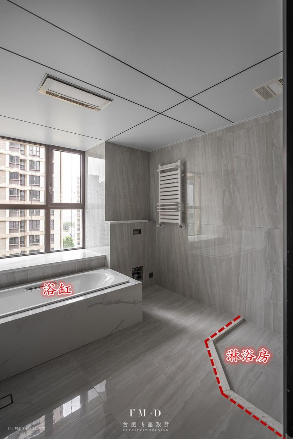 8.5㎡的超大主卫,浴缸和淋浴房分开设计,使用方便,减少打扫卫生的麻烦,浴缸旁边还有大窗户和飘窗,光线好,视野好,只要做好隐私保护,泡个舒服的澡简直太爽了!