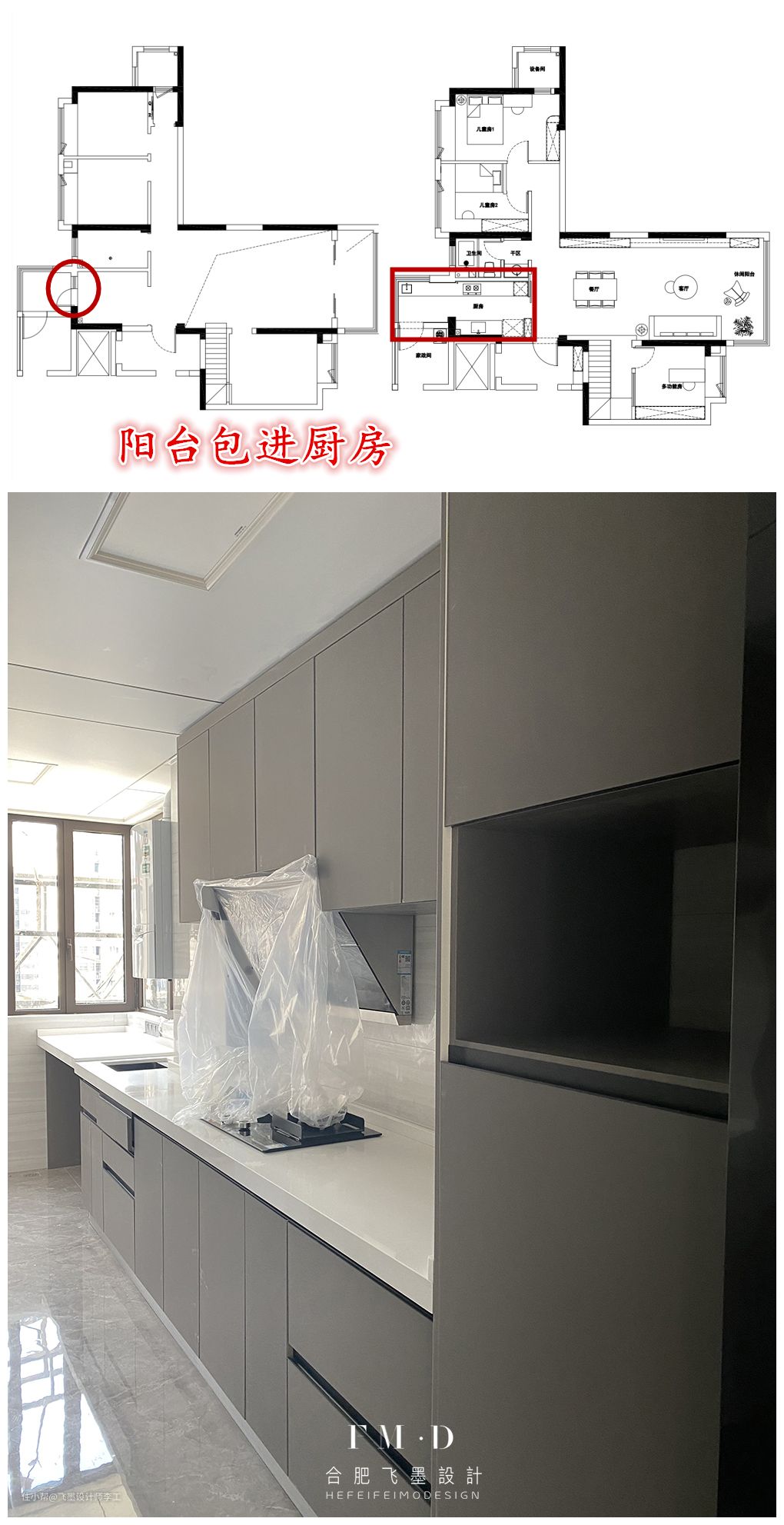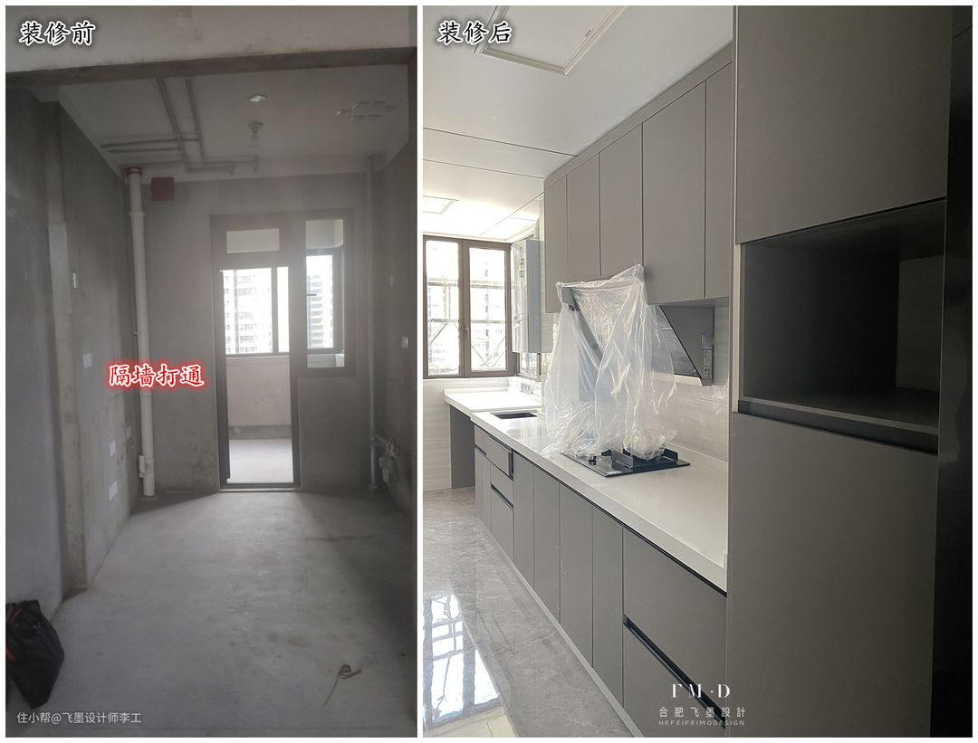 原本的厨房空间小,还是个暗厨,设计师将阳台打通,改造后的厨房9.5㎡,打个超长橱柜越用越顺手,不管是收纳还是台面空间都能满足一家人的需求,最关键是暗厨变明厨。