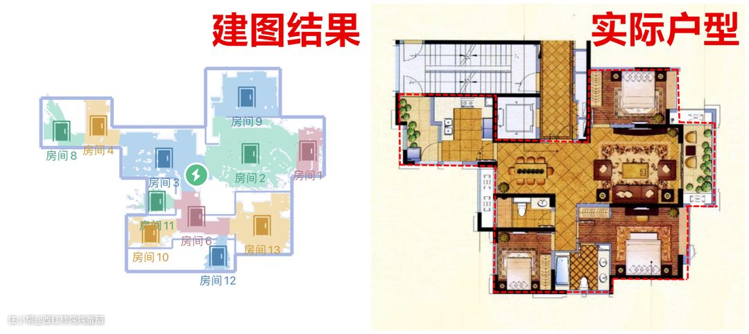 将建图结果与世纪户型图放在一起做个对比,不难发现,这台科沃斯 T9的建图精度还是相当高的 ▲