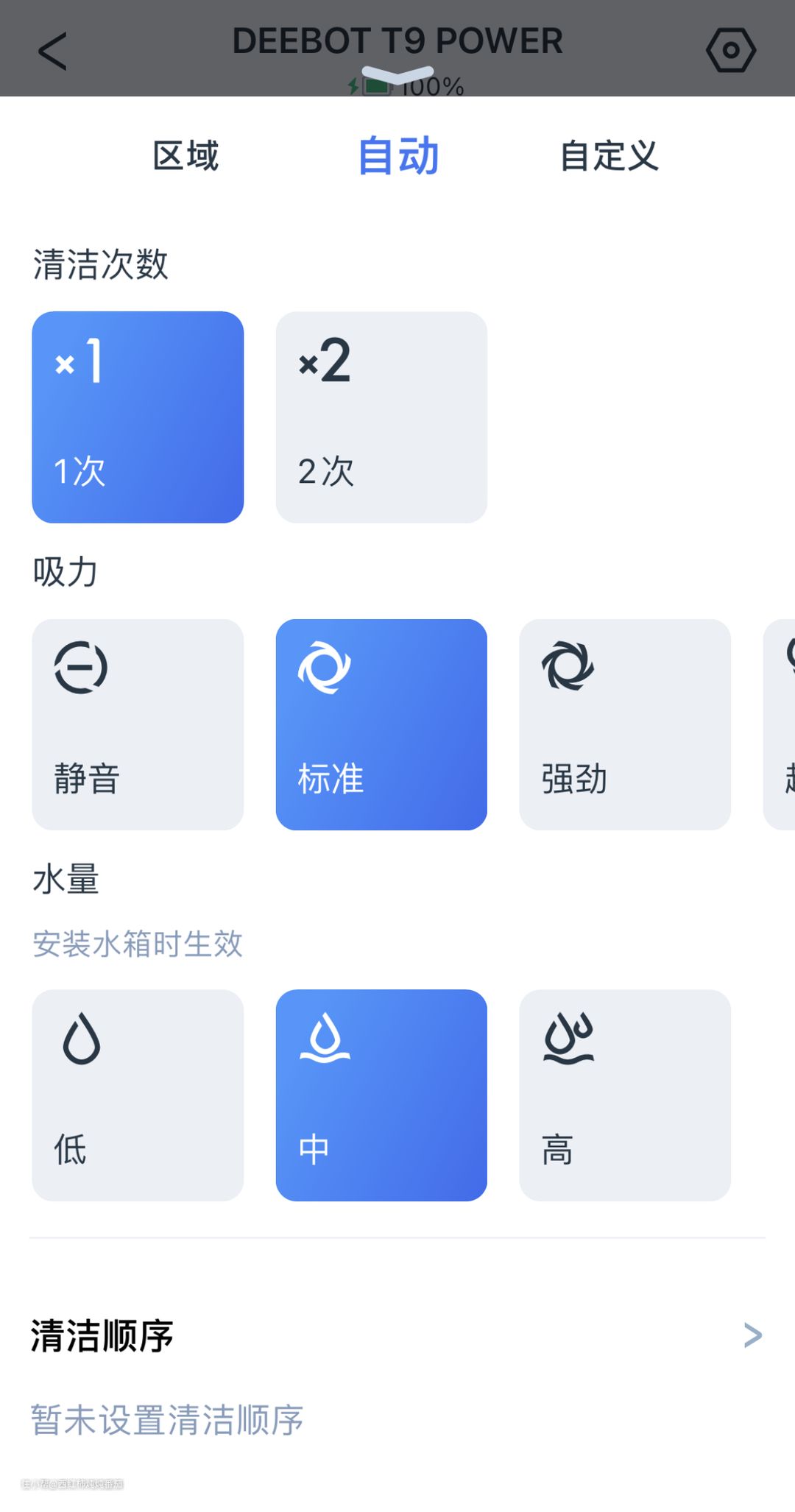 依旧是在机器人控制主界面,手指上划后还可以直接设置清洁次数、吸力和水量大小 ▲