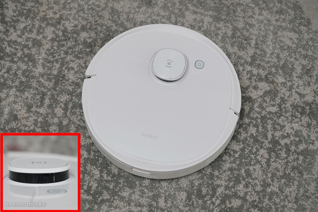 对于不会使用 APP的老年人来说,单按键的设计避免了误操作的可能性,真正做到了化繁为简;同时为了有效保护传感器,科沃斯将顶盖侧面也封了起来。相较于 LDS激光雷达传感器,使用 dToF传感器不但建图效率更高,而且还可以有效避免强光干扰。