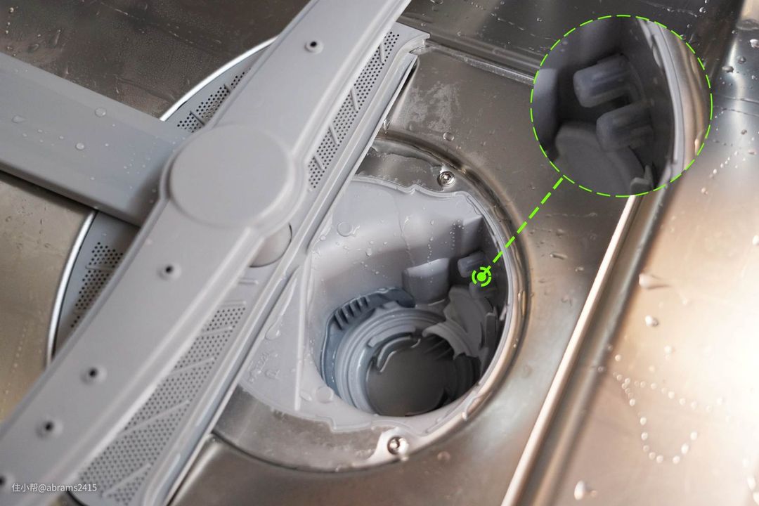 ▲水泵滤网共三层,第一层和第二层是粗制滤网,过滤饭粒等大型物体。第三层则是金属细滤网,过滤直径更小的食物残渣。保护水泵免受异物卡住。