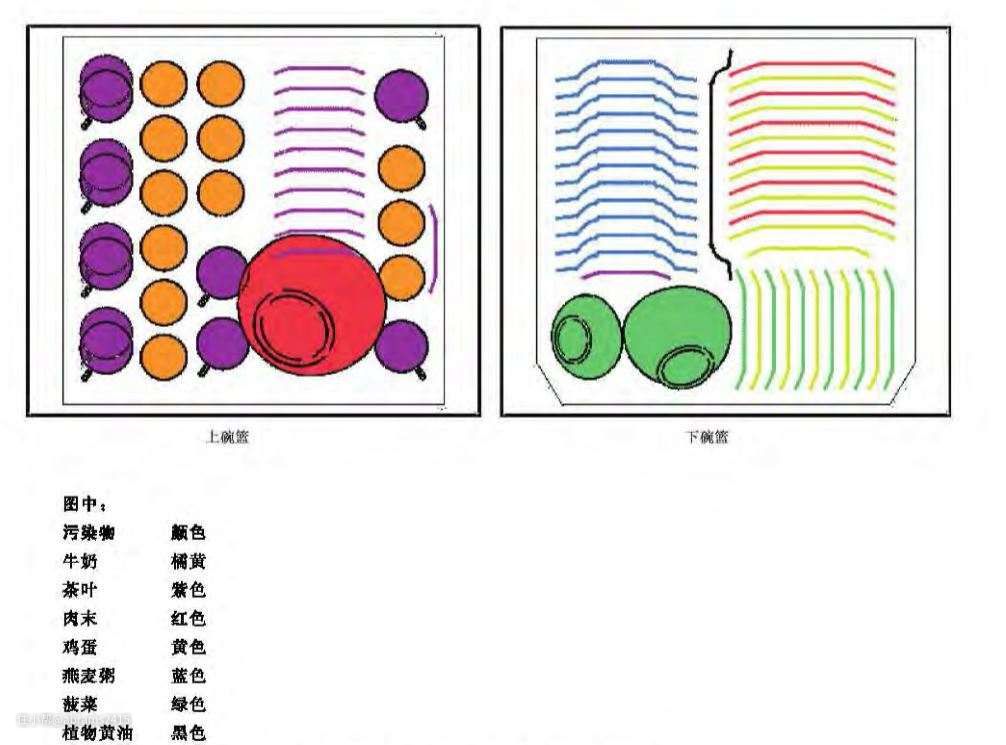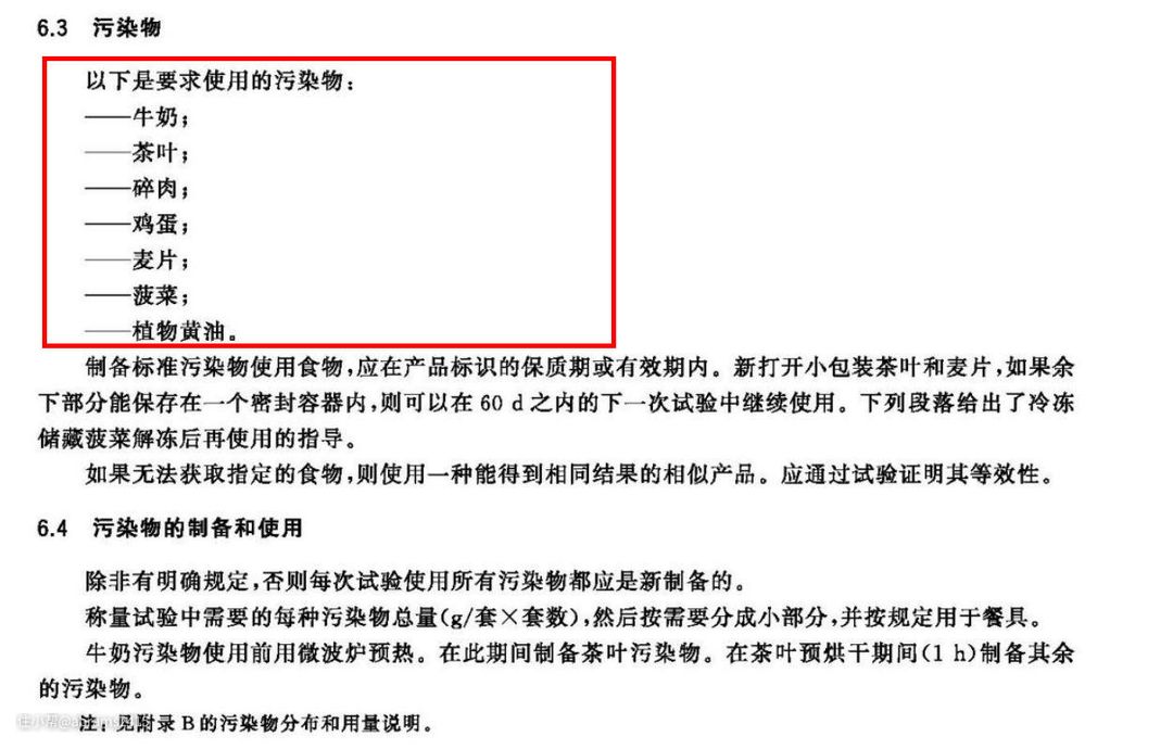 ▲按照国标《GB/T 20290-2016 家用电动洗碗机性能测试方法》第6章节洗涤性能中6.2 污染物要求来测试。国家标准中明确需制作七种污染物。