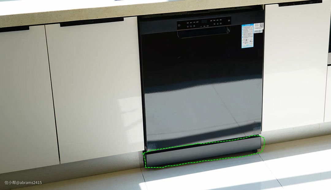 ▲这款西门子嵌入式洗碗机充分利用了橱柜上下空间,下方踢脚线无需切割。最大程度保持了原橱柜的完整。