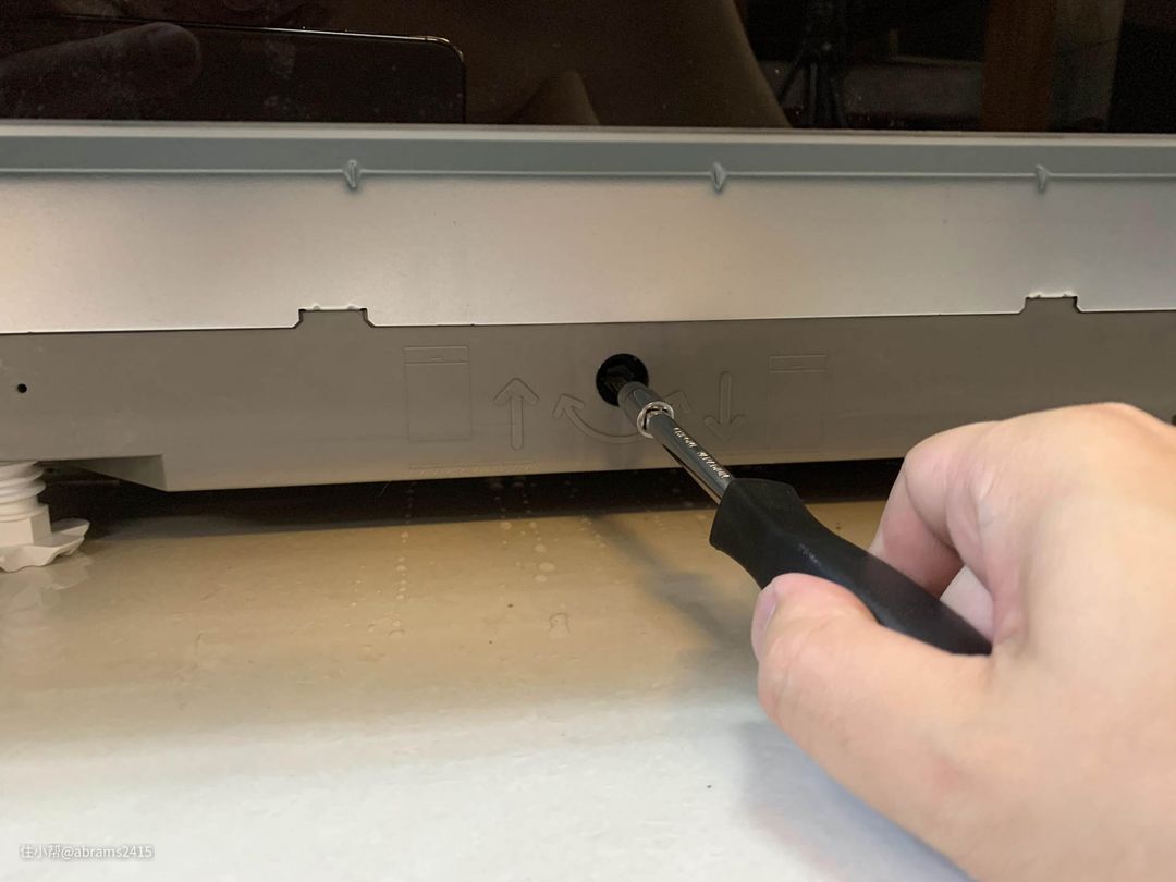 ▲这台西门子SJ436B09QC 12套洗碗机安装进位置后,后部垫脚高度通过前面的齿轮进行调节。用来调整洗碗机下沿和两侧橱柜齐平。