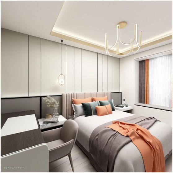 设计说明:轻奢、前卫的现代风格,金属是必不可少的表现手法,硬包背景墙是整个空间沉稳的核心,搭配白色和灰色使整个空间显得沉稳、大气,爱马仕橙彰显着业主的品味。 所有的设计构思,皆在辉映业主的气质。或是空间的一把单椅,或是一件精致的摆件,亦或在整个空间中作为跳色的配角,都是温馨的点缀。