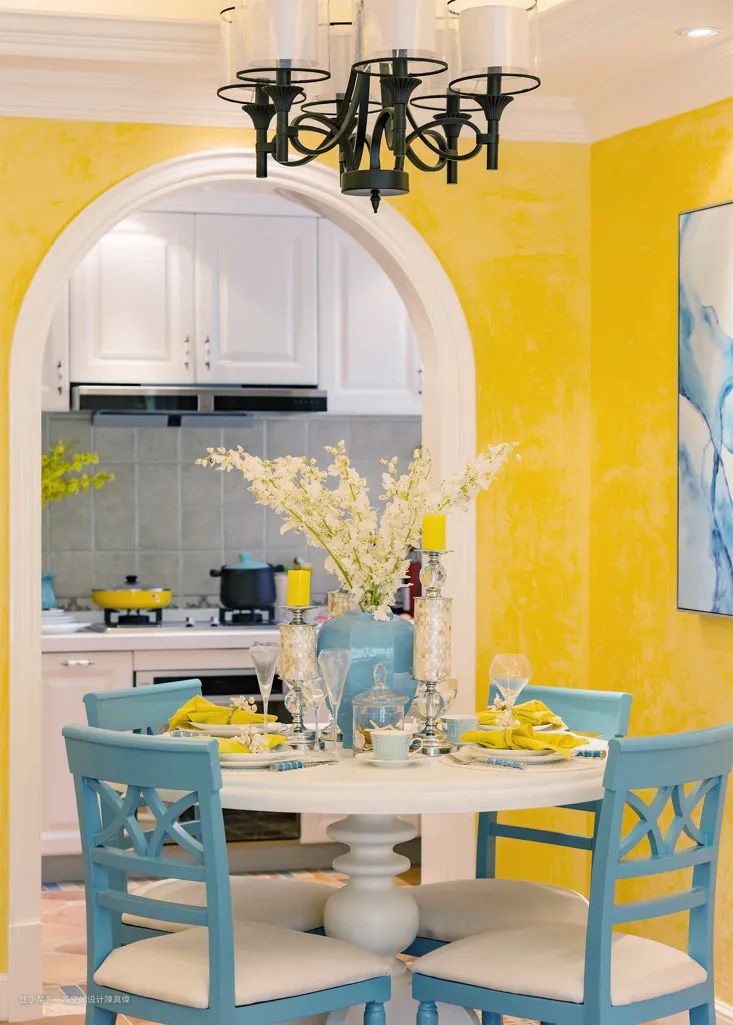 对比色:可以是冷暖色对比,也可以是不同色系、不同肌理之间的对,如红和绿、红和蓝、黄和蓝,运用得当可以使空间更具视觉冲击。