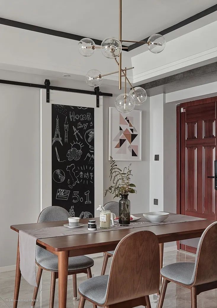 布局时,一个空间一个要有一个中心点,打造主次分明的层次美感,这个中心点也是软装搭配的重点,比如说客厅里选了一盏造型独特的吊灯,沙发和装饰画就要走简约路线,互补互衬。