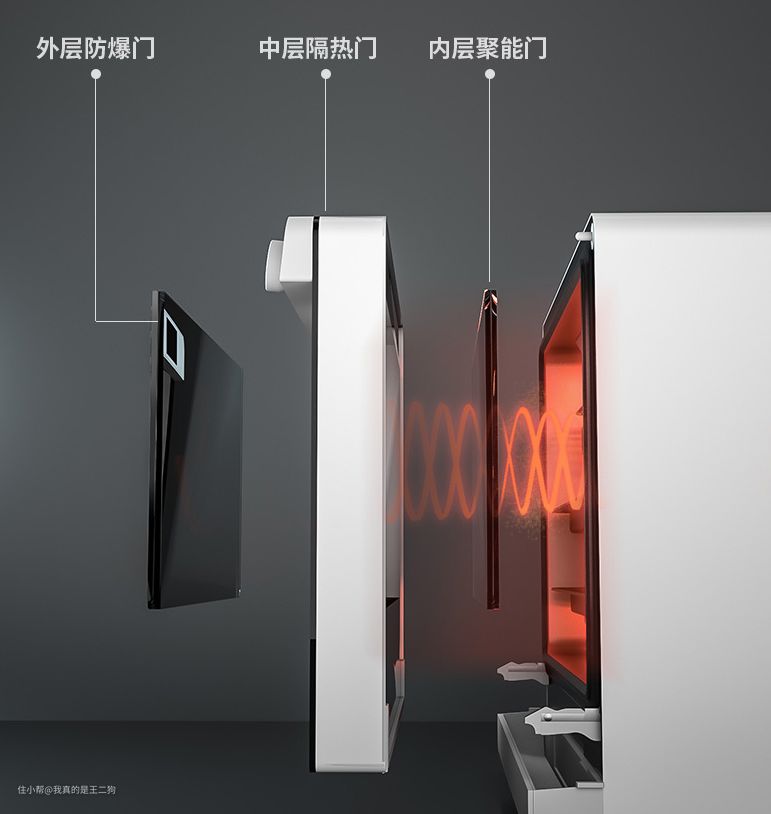 密闭性对控温表现影响巨大,大宇蒸烤箱K6采用了三层隔热门设计,密闭性更好,可以轻松实现更好的内部控温。同时三层设计有效增加了使用的安全性,对内部的高温有更好的隔离效果。