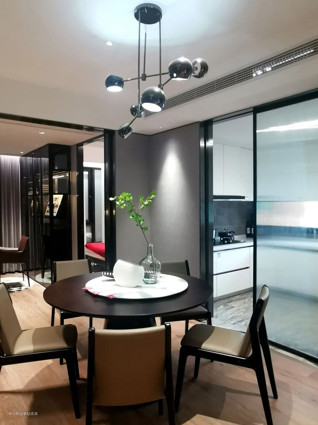 如果一定要用吊灯,注意灯与桌面的距离应在70cm-80cm左右。