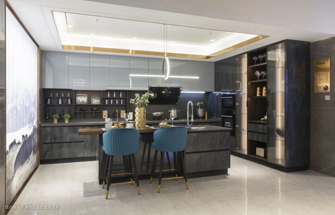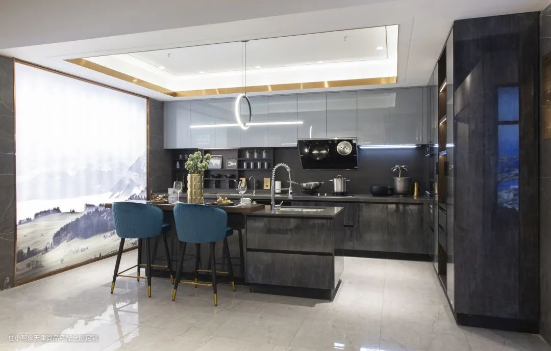 ▲一般开放式厨房会选择餐厨一体化,将中岛台用作就餐场地,尤其适合小两口居住。搭配高脚椅,摆上鲜花或绿植,生活充满仪式感。